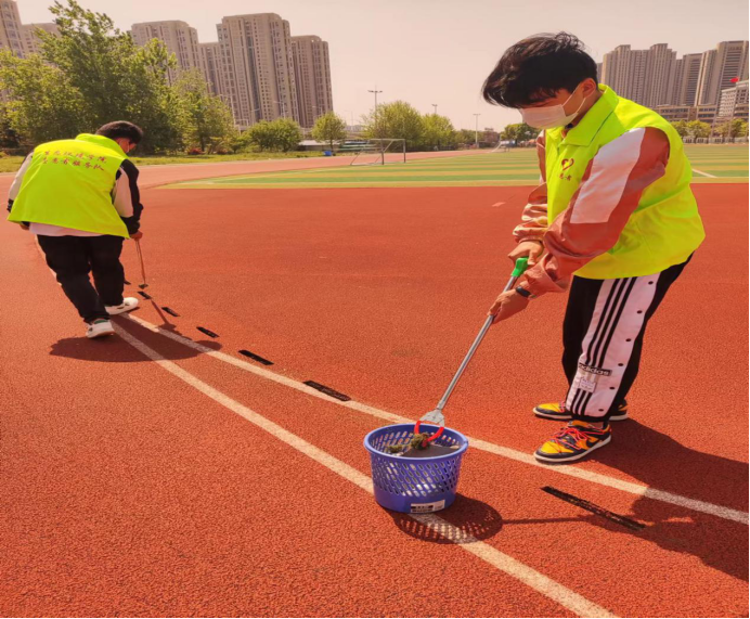 志愿者们一路来到体育场,大家分工合作,集中清理操场草坪、跑道、观看台等卫生死角,并对操场四周的下水道里的垃圾进行了集中清理。另一路志愿者清理大学科技园花坛内杂草。