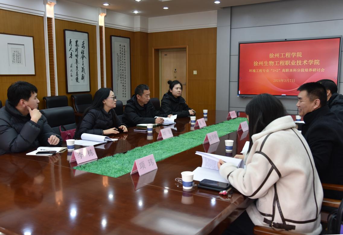 为进一步加强我院环境工程技术专业“3+2”高职本科分段培养合作项目,做好高职本科之间的有效衔接,3月7日下午,徐州工程学院环境工程学院副院长张建昆一行4人来我校就“3+2”分段贯通培养进行交流研讨,学院党支部书记朱明、院长刘飞及相关专业教师参加了此次研讨会。