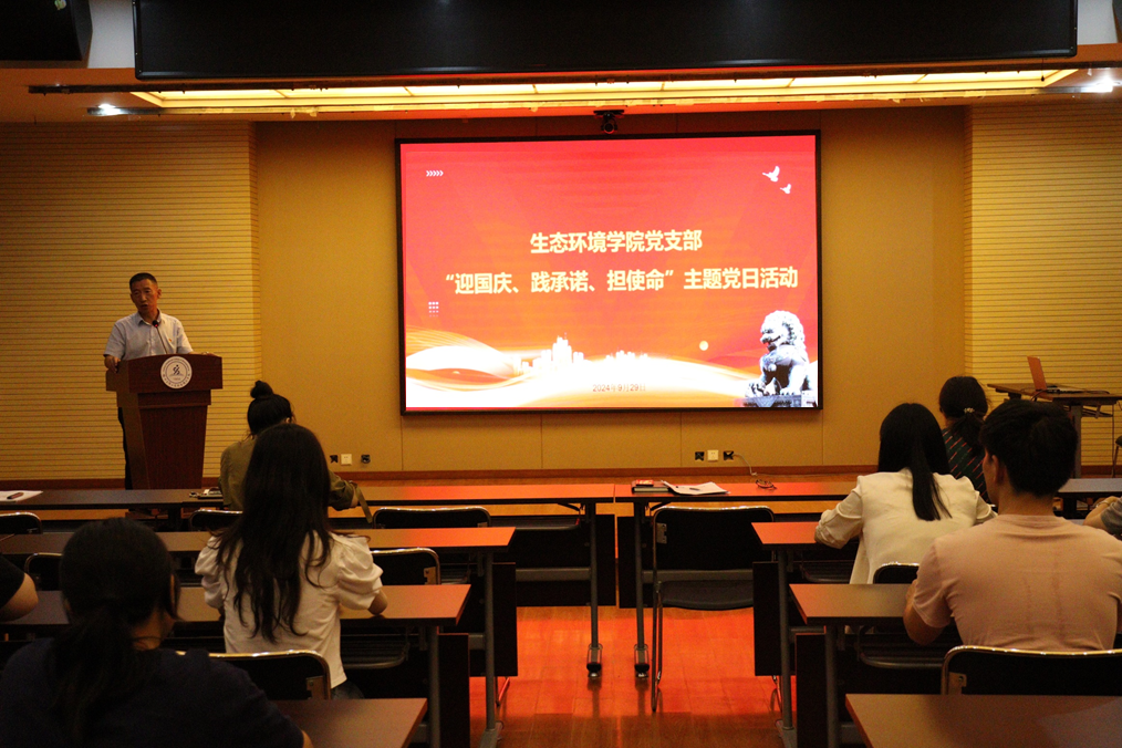 在中华人民共和国成立75周年到来之际,生态环境学院党支部于2024年9月29日下午,在图书馆一楼视频会议室举行预备党员入党宣誓仪式。支部党员、入党积极分子代表参加了这项活动。